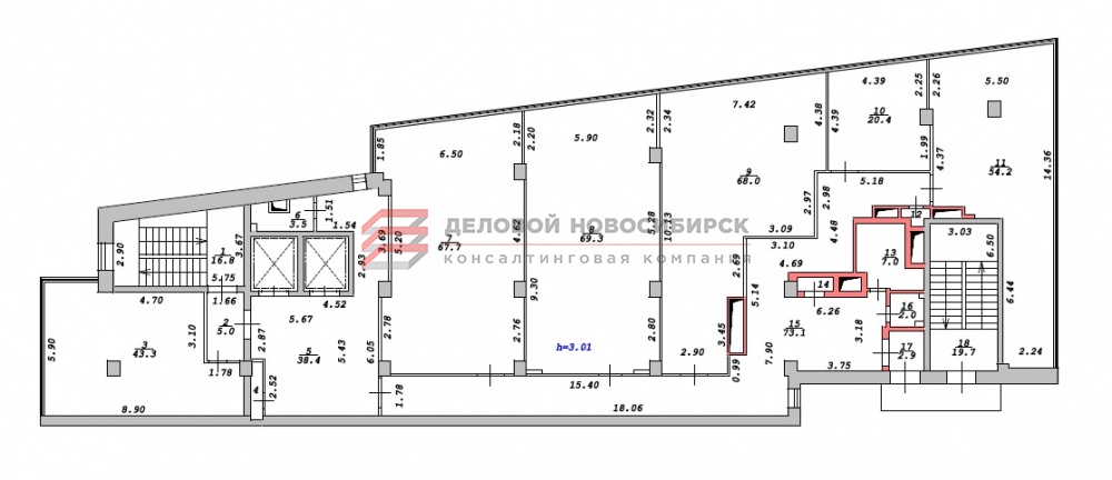 Предлагается в аренду отдельный офисный блок на 7 этаже бизнес-центра общей площадью 279,6 кв.м (67,7 кв.м + 69,3 кв.м + 68,0 кв.м + 20,4 кв.м + 54,2 кв.м), кабинетная система (возможность аренды по кабинетам), высота потолка 3,01 м. Здание расположено по 1 линии домов ул. Красный проспект, удобная транспортная развязка, высокий пешеходный и автомобильные трафики, до станции метро 5 минут пешим ходом. Витражные окна, потолок - амстронг, стены - обои под покраску (окрашены в светлый тон), на полу керамогранит. Центральная система кондиционирования (сплит-система), свой с/узел. В здании имеется 2 лифта, смонтирована охранная сигнализация, система видеонаблюдения. Телефон, интернет от нескольких провайдеров. Круглосуточная «живая» охрана, подземная парковка. Стоимость арендной ставки 850 руб./кв.м (возможен торг), коммунальные услуги оплачиваются дополнительно ~ 200 руб./кв.м.