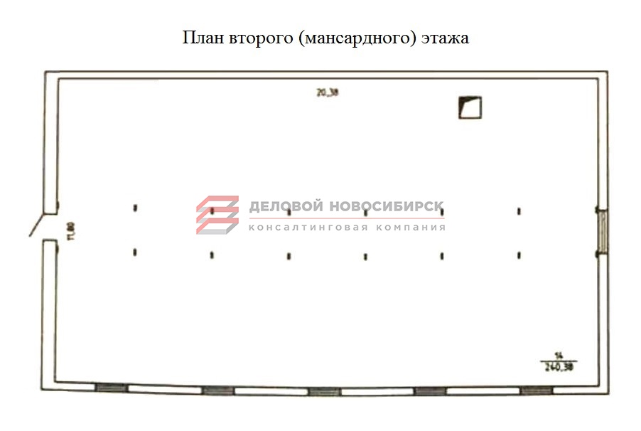 Второй (мансардный) этаж площадью 240,38 кв.м ранее не использовался, состояние ремонта - под самоотделку, высота потолка 3 м, по стене 2,3 м.