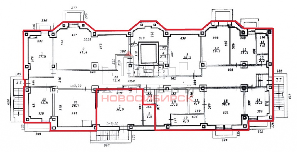 Общая площадь 340 кв.м, 2 отдельных входа со стороны двора, 11 комнат от 11,5 кв.м до 47,4 кв.м, вспомогательные помещения, 2 с/узла, высота потолков 3,22 м.