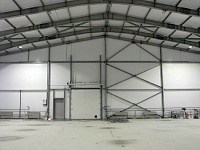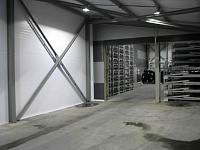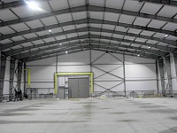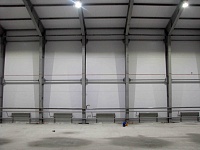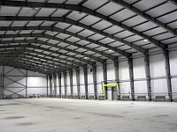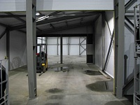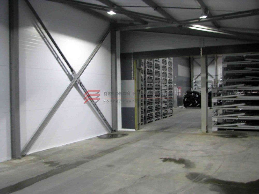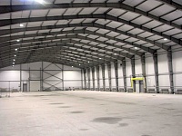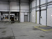 2) 3 складских здания по 1442 кв.м и переходы между ними 1050 кв.м. общая площадь 5760 кв.м, пол на отметке 1,2 м, высота потолка 9 м, 3 ворот-доков на одно здание, антипылевое покрытие пола, установлены охранно-пожарная сигнализация, порошковая система пожаротушения.