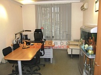 Предлагается в аренду офисное помещение, расположенное на 1-ом этаже административной части жилого дома, отдельный вход. Общая площадь 120 кв.м: холл 40,7 кв.м, 5 кабинетов (8,5 кв.м, 10,7 кв.м, 13,1 кв.м, 16,4 кв.м, 22,3 кв.м), кухня-столовая, с/узел. Выполнен качественный ремонт: пол керамогранит, коммерческий линолеум, стены обои под покраску, потолок армстронг, гипсокартонное волокно со встроенными светильниками, высотой 2,8 м. Офис сдается с мебелью, орг. техникой, кухонной бытовой техникой.