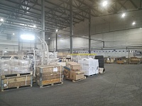 - отапливаемое складское помещение площадью 3368,9 кв.м, высота потолка непосредственно в складской части 9,5-12 м, пол ровный бетонный, семеро ворот на отметке 1,2 м (четверо ворот-доков, трое секционных ворот на крытый автопандус), температурный режим в основном складе +15-20С, освещение светодиодное, гидрантная система пожаротушения, установлены охранная и пожарная сигнализации, система наружного видеонаблюдения;