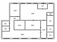 Помещение расположено на 1 этаже жилого дома, общая площадь 156,0 кв.м, свободная планировка, на данный момент установлены стеклянные перегородки, выделен операционный зал 41,5 кв.м, помещения для сотрудников - 29,9 кв.м и 14,3 кв.м, кабинет управляющего 11,6 кв.м, комната переговоров 12,5 кв.м, 2 с/узла, кассовый узел, серверная.