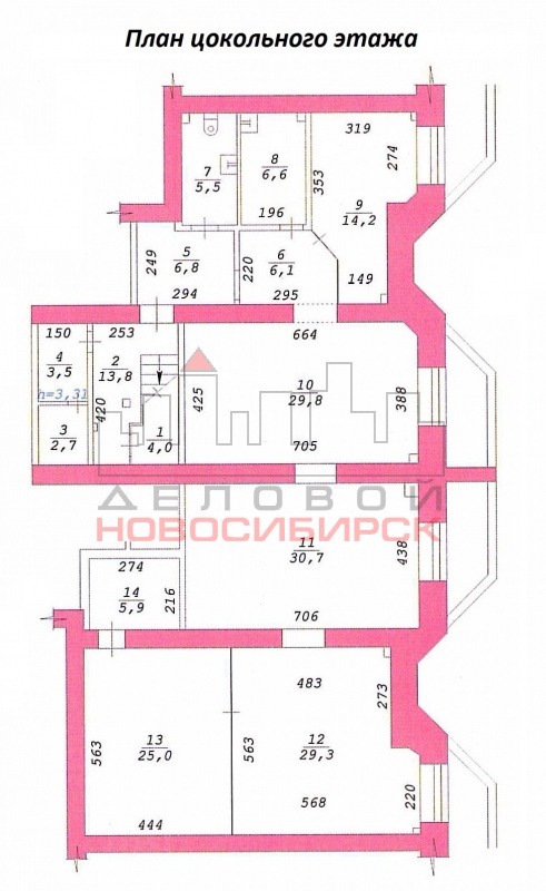 - цокольный этаж 183,9 кв.м, 4 комнаты от 14,2 кв.м до 30,7 кв.м, с/узел, вспомогательное помещение, высота потолков 3,31 м;