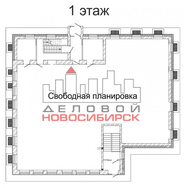 1 этаж - помещение свободной планировки, большие окна с деревянными рамами с 4 сторон, высота потолка 3,7 м.
