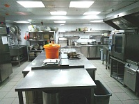 4) моечные, разделочные столы, холодильные камеры; холодильники, печи, вытяжки, посуда;