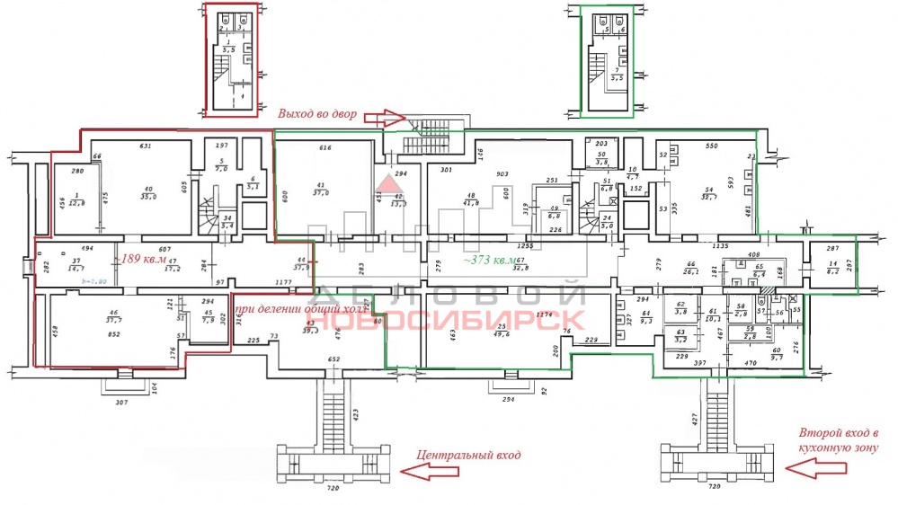 Предлагается в аренду помещение универсального назначения, подвальный этаж административной части жилого дома 1995 года постройки (1 этаж нежилой), вход в помещение хорошо виден с 1 линии ул. Красный проспект, вблизи расположены магазины, торговые центры, крупные жилые массивы, 5 минут пешим ходом до станции метрополитена "Заельцовская" и Площади Калинина. Общая площадь 562,3 кв.м, состоит их 2 помещений (можно арендовать как целиком, так и по раздельности, центральный вход будет один через общий холл, также есть еще 2 запасных входа):