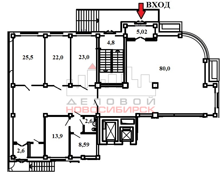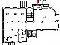 1 этаж административной части жилого дома, общая площадь 248,4 кв.м, 2 отдельных входа (основной и служебный), торговый зал 80,0 кв.м, 3 кабинета (22,0 кв.м, 23,0 кв.м, 25,5 кв.м) разделены стеклянными перегородками, вспомогательные помещения, с/узел, высота потолков 3 м, э/мощности 8 кВт, выполнен качественный ремонт: на полу керамогранит, на стенах декоративная штукатурка, потолок подвесной армстронг со встроенными светильниками, установлена охранно-пожарная сигнализация.