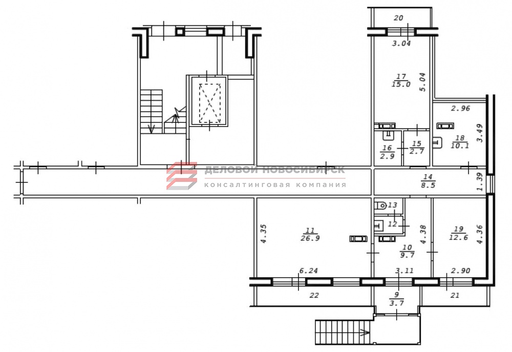 Первый этаж административной части жилого дома, общая площадь 95,0 кв.м, отдельный вход, холл 9,7 кв.м, 3 комнаты - 12,6 кв.м, 15,0 кв.м, 26,9 кв.м, с/узел, 2 лоджии, высота потолка 2,55 м.