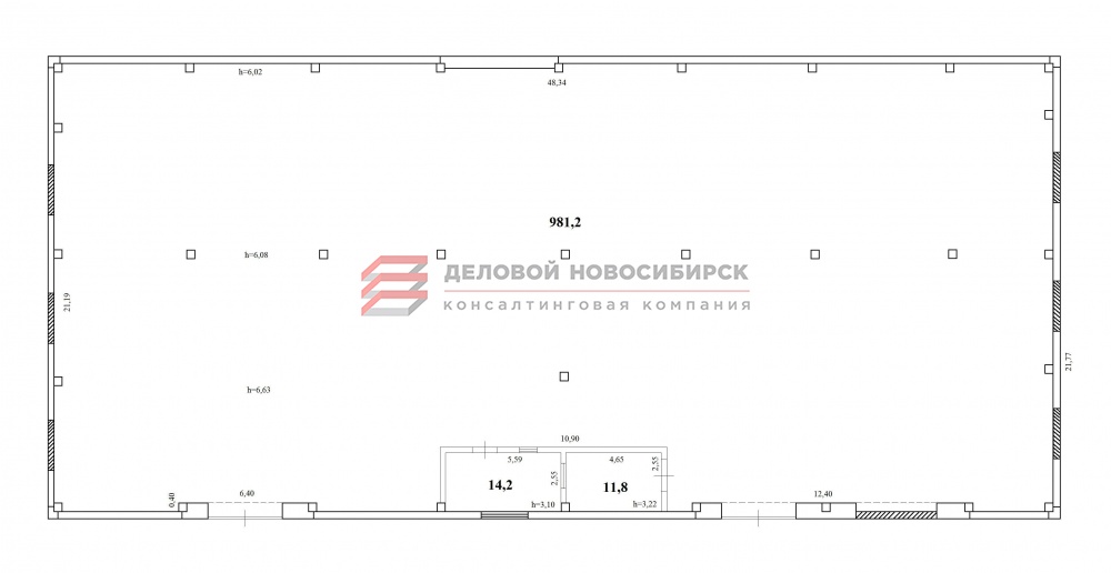 - отапливаемый склад площадью 1000 кв.м, высота потолка 7 м, пол бетонный на уровне земли, двое секционных ворот, охранная и пожарная сигнализации, организованы бытовые помещения и с/узел;