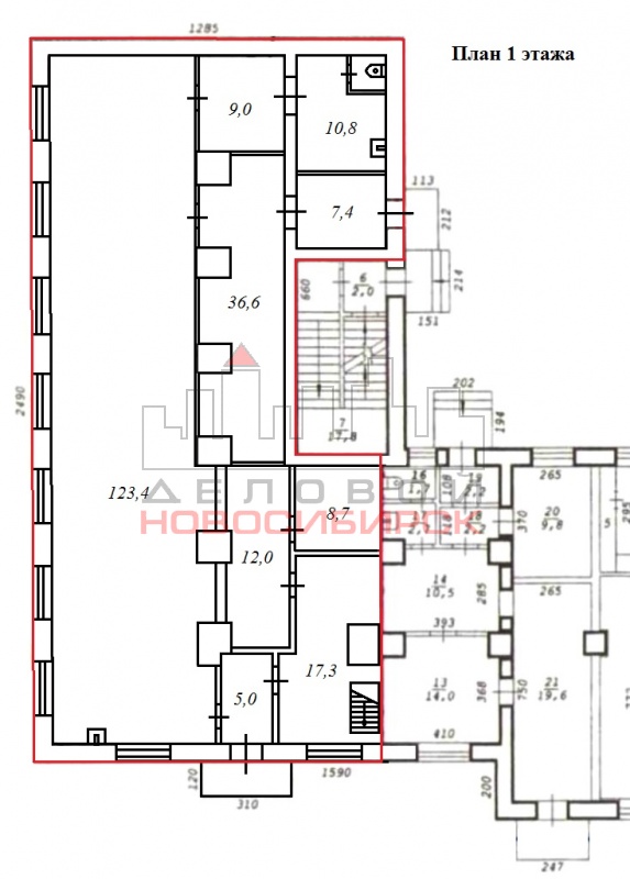 - 1 этаж 222,0 кв.м, отдельный вход с проспекта Дзержинского, высота потолка 3 м, перекрытия смешанные, окна пластиковые, выполнен новый ремонт, на полу плитка, потолок - армстронг, стены покрашены;