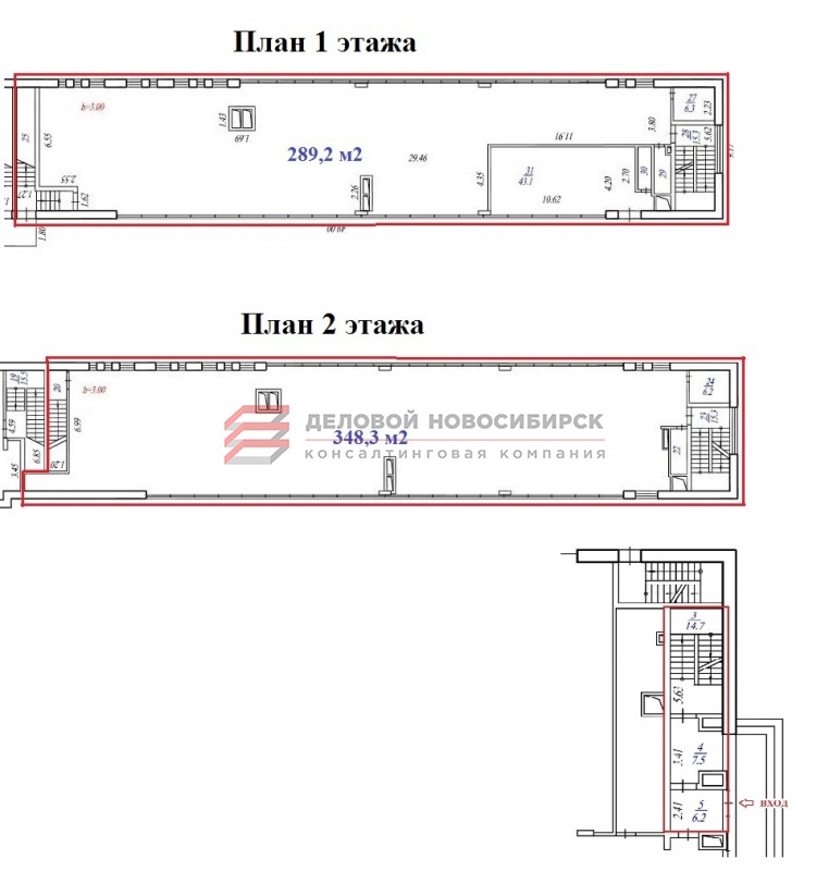 1 этаж площадью 373,4 кв.м, два отдельных входа - со стороны двора и общий вход на два этажа непосредственно с улицы, высота потолка 3 м, в настоящее время разделено на два помещения: зал свободной планировки 289,2 кв.м с с/узлами и подсобными помещениями и с витражным остеклением со стороны магистральной улицы и помещение 43,1 кв.м с собственным с/узлом и отдельным входом со стороны двора.