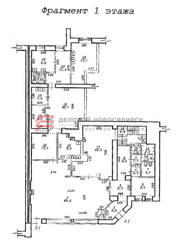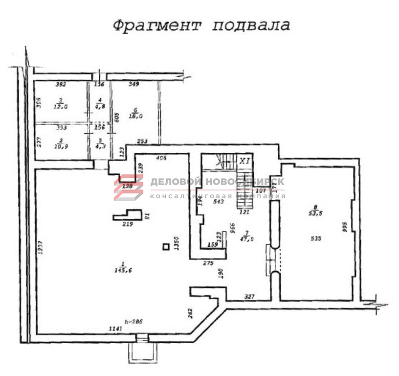 Общая площадь 570,7 кв.м, в т.ч. подвал 256,1 кв.м и 1 этаж 314,6 кв.м.