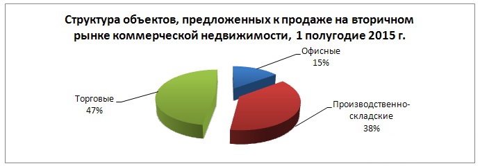 В 1 полугодии 2015г. средние удельные цены предложения выросли по торговым помещениям на 7,4%, по офисным и производственно-складским помещениям цены снизились на 2,9% и 2,3% соответственно.