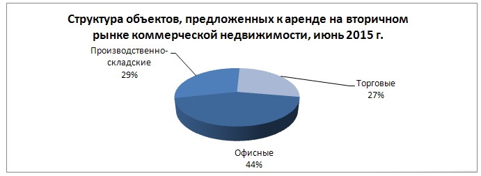 В июне 2015 г. арендные ставки предложения снизились по торговым помещениям на 2,8%, по офисным – на 2,2%, по производственно-складским объектам – на 2,1%.