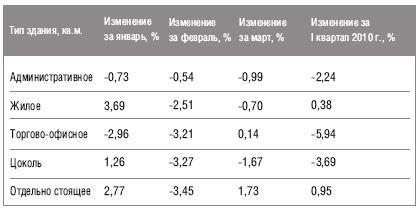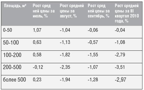 В III квартале 2010 года наибольшее снижение средней стоимости 1 м2 наблюдалось у офисных помещений площадью от 200 до 500 м2, оно составило 3,51%.