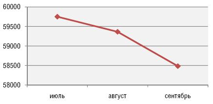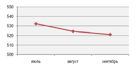 Как видно из графика, средняя цена 1 м2 офисной недвижимости в течение III квартала 2010 года плавно снижалась, во второй половине квартала интенсивность незначительно