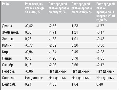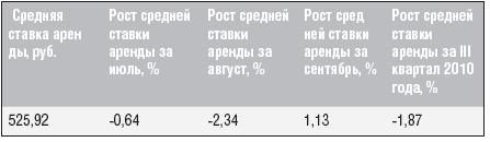 За III квартал 2010 года снижение средней ставки аренды составило 1,87%.