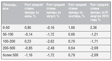 В III квартале 2010 года ставки аренды на помещения площадью от 200 до 500 м2 снизились в среднем на 2,69%.