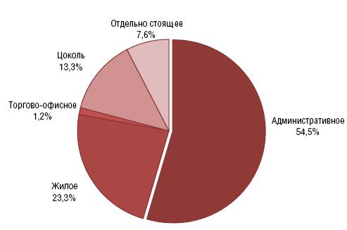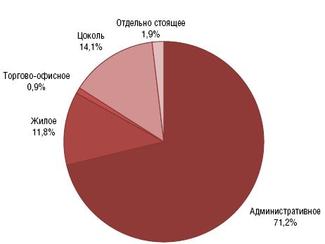 71,2% офисных помещений предлагалось в аренду в административных зданиях, 14,1% располагалось в цокольных этажах, 11,8% в жилых домах.