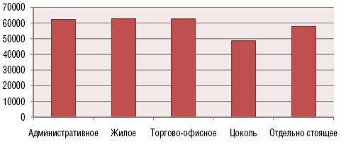 Средняя стоимость 1 м2 офисной недвижимости по типам зданий, руб.