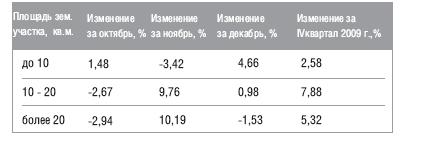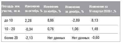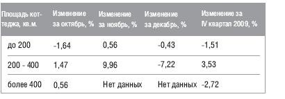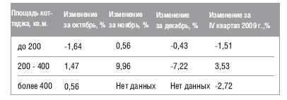В IV квартале 2009 года наибольшее снижение средней стоимости наблюдалось у коттеджей площадью более 400 кв.м., - на 2,72%, в сегменте домов площадью 200-400 кв.м. наблюдалось увеличение средней стоимости на 3,53%