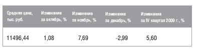 В IV квартале 2009 года наибольшее снижение средней стоимости наблюдалось у коттеджей площадью более 400 кв.м., - на 2,72%, в сегменте домов площадью 200-400 кв.м. наблюдалось увеличение средней стоимости на 3,53%.