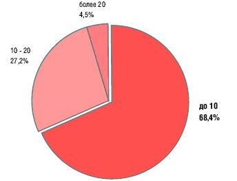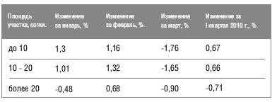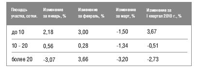 В I квартале 2010 года 68,4% предложения составили коттеджи с площадью участка до 10 соток, 27,2% домов продавались с территорией отЮдо 20 соток. Коттеджи с участком более 20 соток составили всего 4,5% предложения.