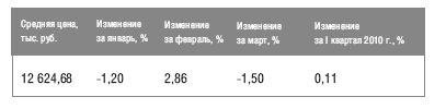 Изменение средней стоимости коттеджей в НСО за I квартал 2010 года составило 0,52%.