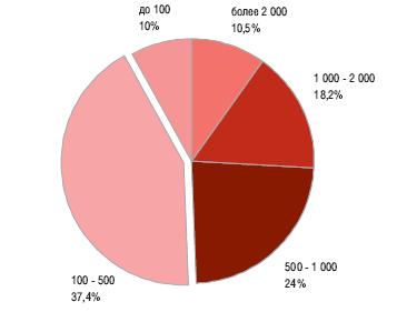 37,4% объектов складской недвижимости, предложенных для аренды, имели площадь от 100 до 500 кв.м.