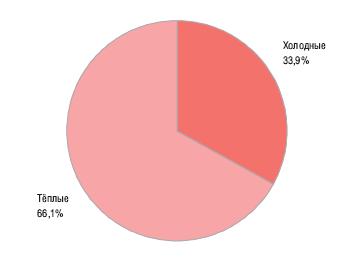 Почти 66% предложенных в аренду складских объектов являлись теплы м и складам и, а 33,9% - холодными.