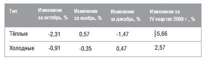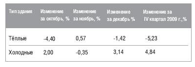Средняя ставка аренды на теплы е складские помещения за IV квартал 2009 года снизилась на 5,23%, на холодные увеличилась на 4,84 %.