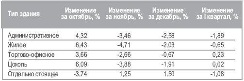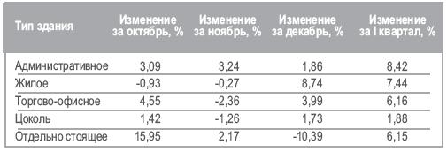 2011 года было зафиксировано у помещений, расположенных в административных зданиях - на 1,89%. Незначительное увеличение средней стоимости наблюдалось на торговые помещения, расположенные в торговых центрах - на 0,23%.