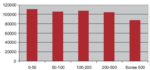 100 кв. м - 1332 рубля. Самая низкая средняя арендная ставка 1 кв. м торговой недвижимости была на помещения площадью более 500 кв.м.